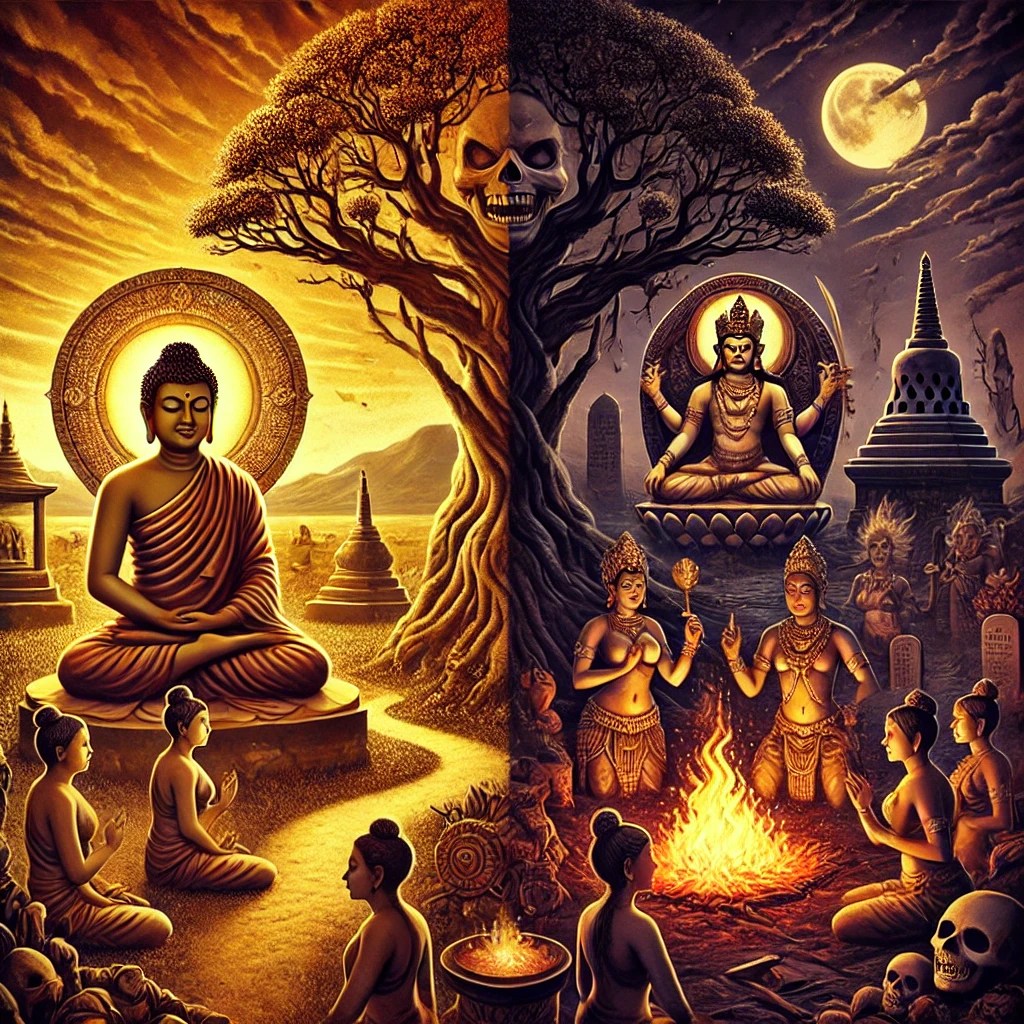 The Buddha’s original teachings in the Pali Canon and early Mahayana texts emphasized ethical living, meditation, and wisdom as the path to liberation. Nowhere in the sutras do we find instructions for transgressive sexual rites, violence, or summoning spirits, yet these are prominent features in Tantric Buddhism.