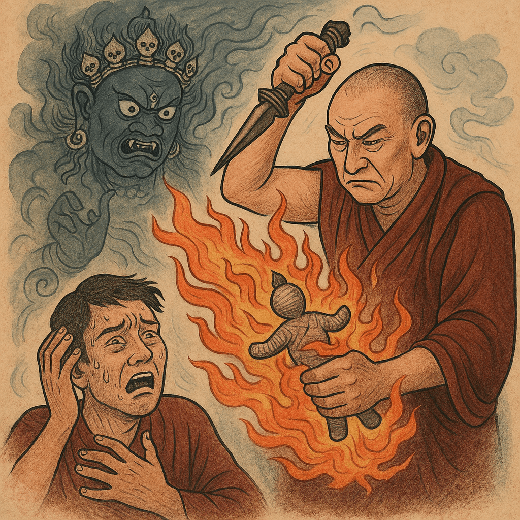 • Effigies and “Black Magic” in Tantric Practice: Tibetan lamas developed elaborate ritual technologies to deal with enemies or detractors. Human effigies and dough figures (torma) are traditional ritual implements used to represent a target in magical rites. According to scholars, a “wide array of images, such as human effigies…or ritual dough-offering sculptures, were employed to…subdue or destroy one’s enemies” (War Magic: Tibetan Sorcery | Rubin Museum). In wrathful rites (such as the gTor dabs or torma-throwing ritual), the lama empowers an effigy with mantras and offers it to wrathful spirits or deities, directing the ensuing harm toward the intended victim. War Magic was even used at state levels, for instance, 12th-century Lama Zhang, a militant yogi, sent cursed tormas and spells against his foes and had protector goddesses like Shri Devi “assist” in battle (War Magic: Tibetan Sorcery | Rubin Museum). These historical uses of violent sorcery, while aimed at external enemies, set a background against which a guru might also target an “enemy” disciple who they feel has betrayed them.