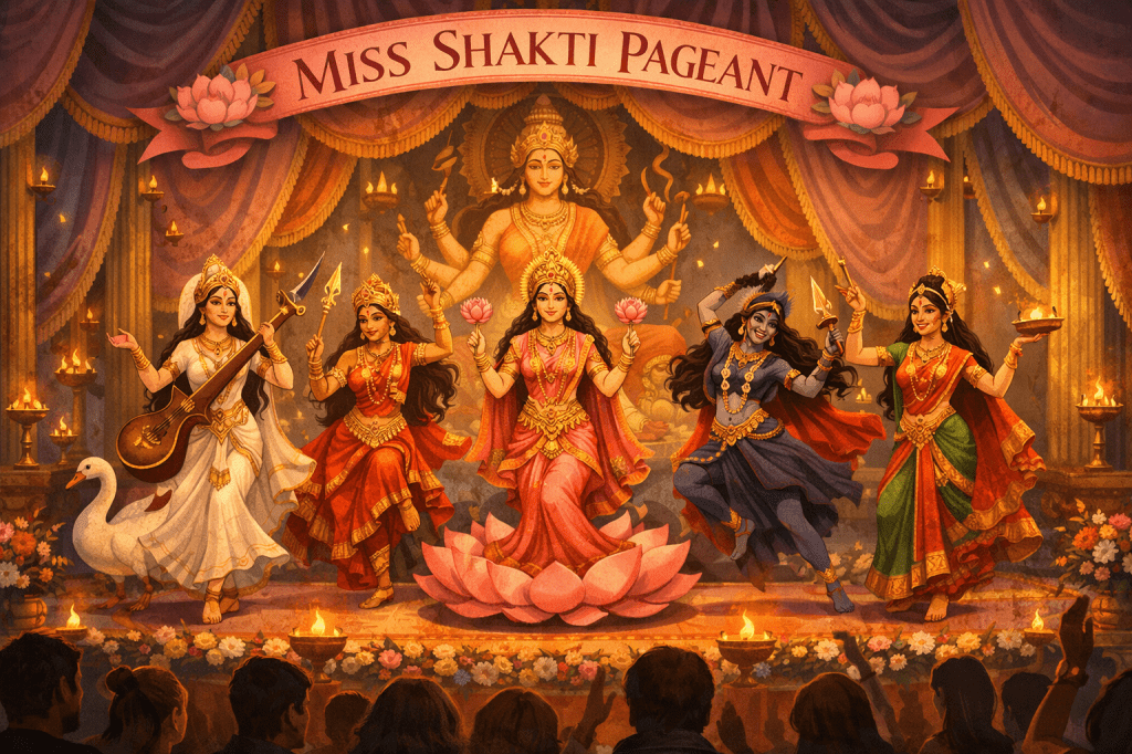 (Left) The Miss Shakti pageant described by former members of the organization. Participants performed dances representing Hindu goddesses during the group’s annual spiritual camp in Costinești, Romania. According to survivor testimony, the competition was presented as a celebration of divine feminine energy within the movement’s tantric teachings. At the end, women were encouraged to lose their costumes and dance naked.